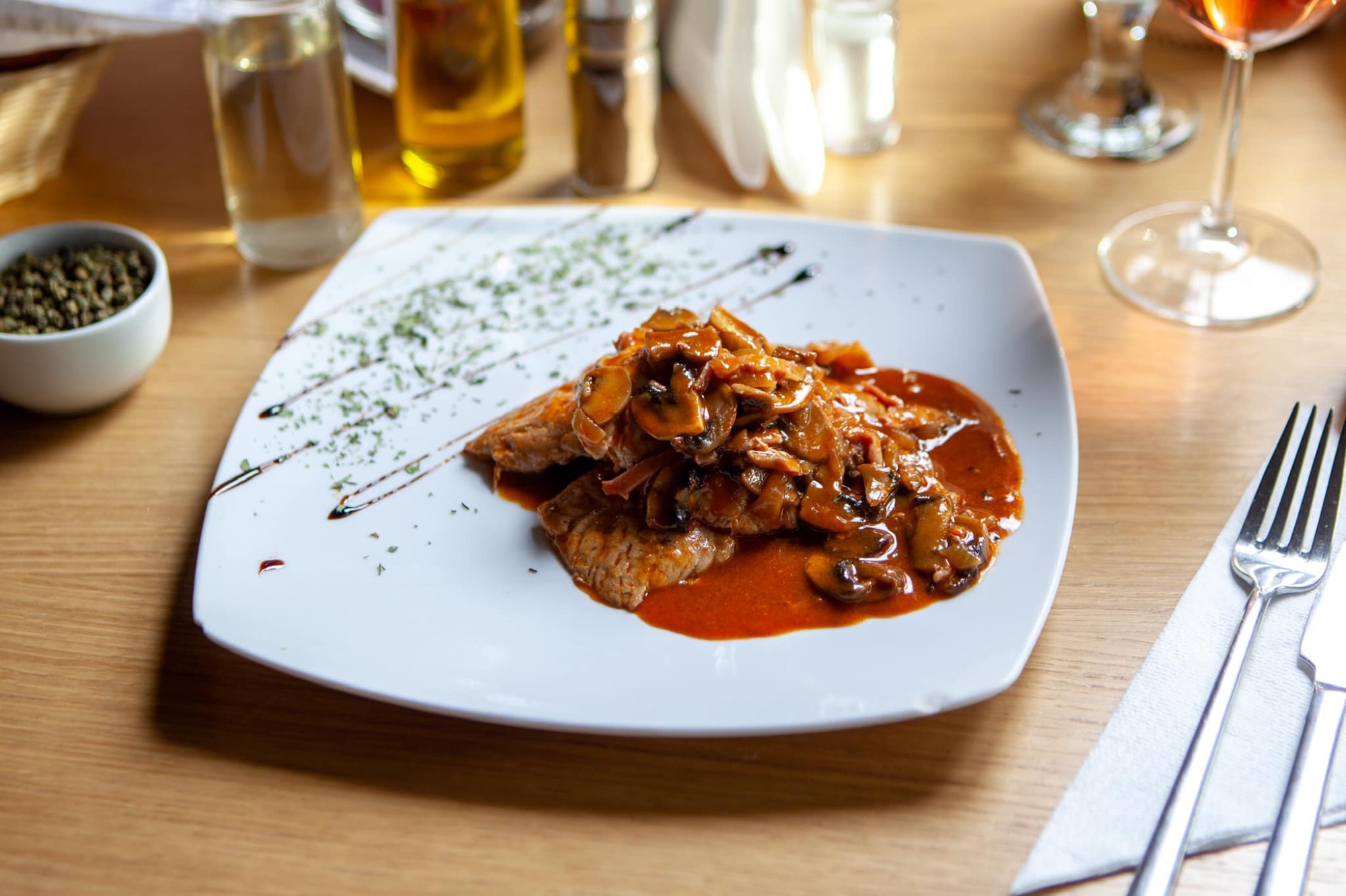 Bucataria noastra italiana ofera o varietate de preparate delicioase, incepand cu carnea de vita gatita la gratar, acompaniata de legume proaspete si sosuri savuroase.